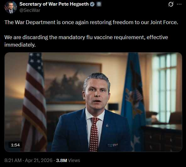 "El Departamento de Guerra está devolviendo una vez más la libertad a nuestra Fuerza Conjunta.