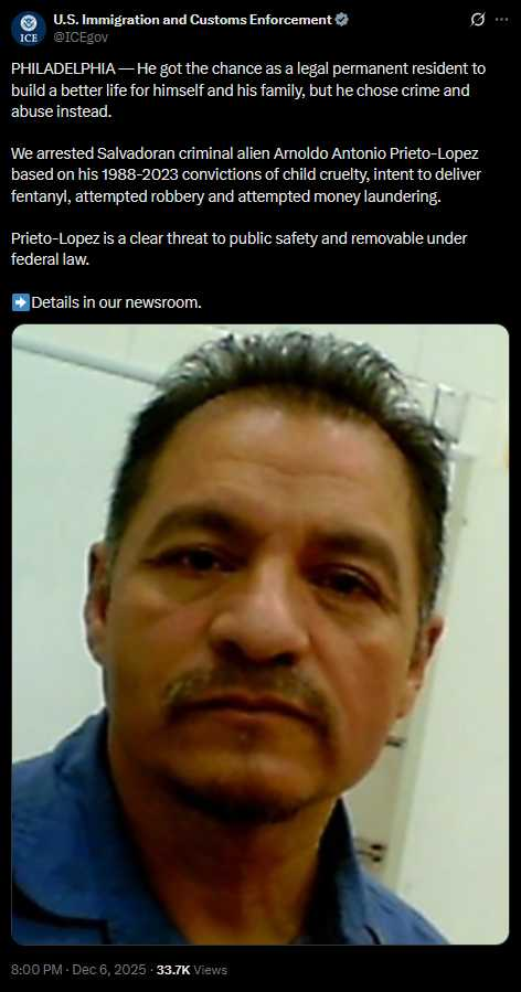"FILADELFIA — Como residente permanente legal, tuvo la oportunidad de construir una vida mejor para él y su familia, pero en su lugar optó por el crimen y el abuso.