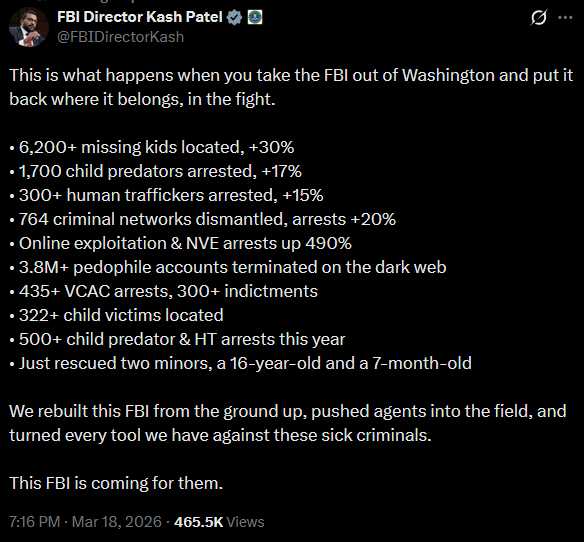 Hemos reconstruido este FBI desde los cimientos, hemos desplegado a nuestros agentes sobre el terreno y hemos dirigido todas las herramientas a nuestro alcance contra esos criminales depravados.
