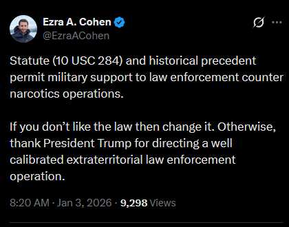 *** Ezra Cohen le está enviando este mensaje a todos esos congresistas que se están quejando de la operación contra Maduro.