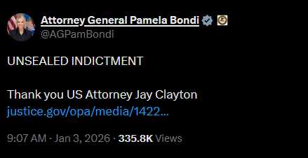 La Fiscal General Pam Bondi agradece al Fiscal Jay Clayton luego de abrir la acusación sellada contra Maduro.