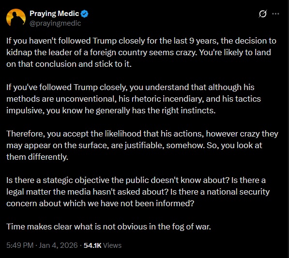 "Si no has seguido de cerca a Trump durante los últimos 9 años, la decisión de secuestrar al líder de un país extranjero parece una locura. Probablemente llegarás a esa conclusión y te mantendrás firme en ella.